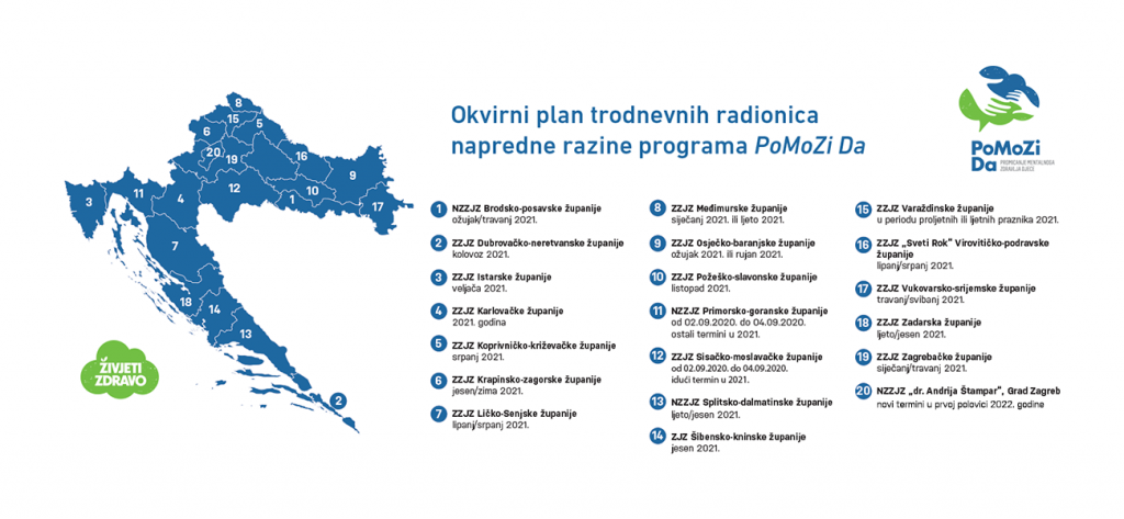 Slika 2: Okvirni plan provedbe trodnevne edukacije za naprednu razinu PoMoZi Da u sljedeće dvije godine po županijama.