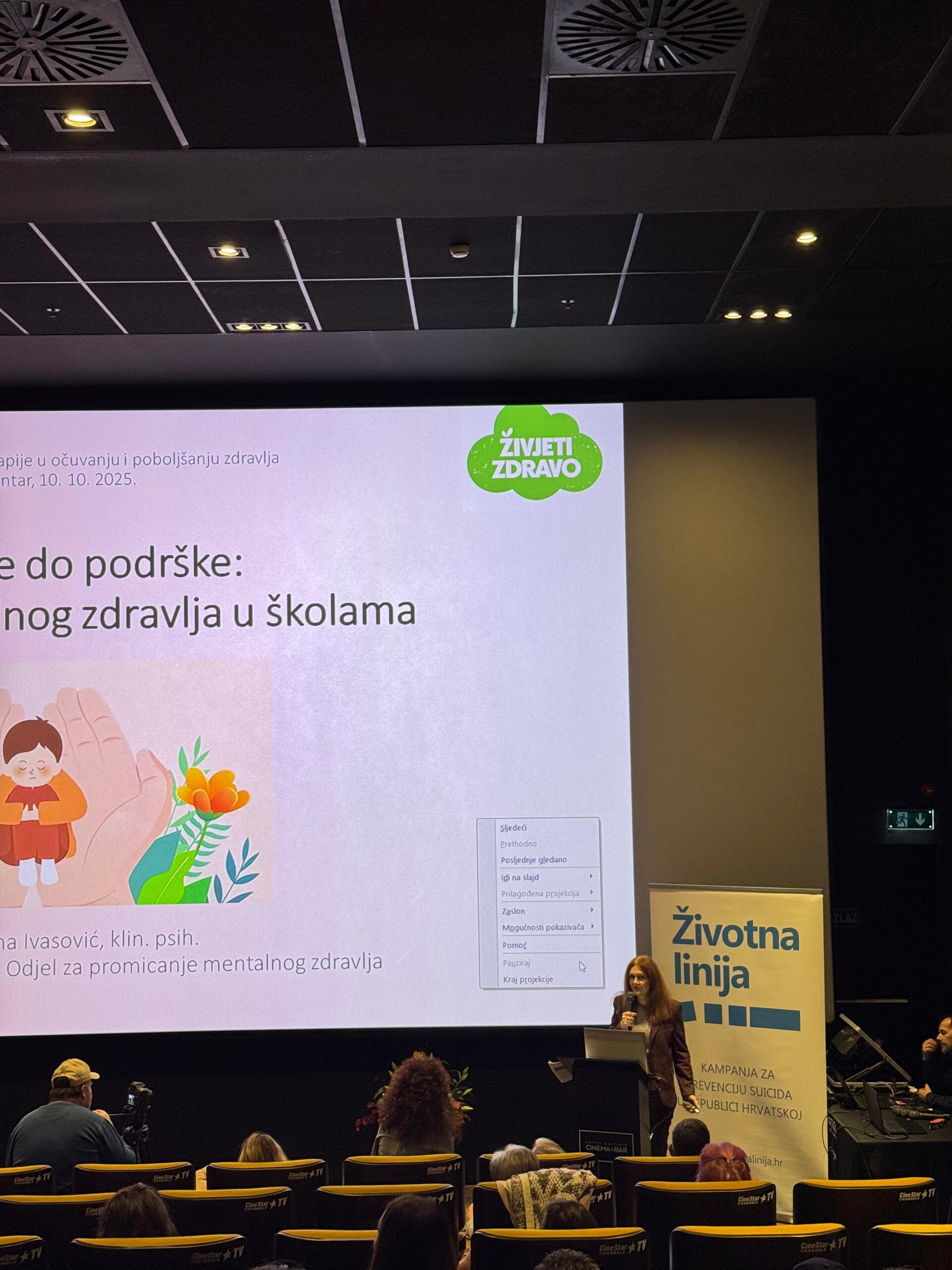 Dr. sc. Vesna Ivasović, djelatnica Odjela za promicanje mentalnog zdravlja Službe za promicanje zdravlja, bila je pozvana da održi predavanje. Tema predavanja je bila mentalno zdravlje djece i mladih.